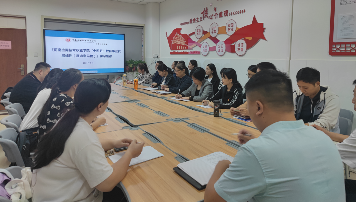 为加快推进教育现代化,提升人才培养质量,办好人民满意的教育,根据学校要求,今年会jinnianhui官网组织全体教职工于2021年9月28日下午对《今年会jinnianhuicom “十四五”教育事业发展规划 (征求意见稿)》进行了学习研讨。
