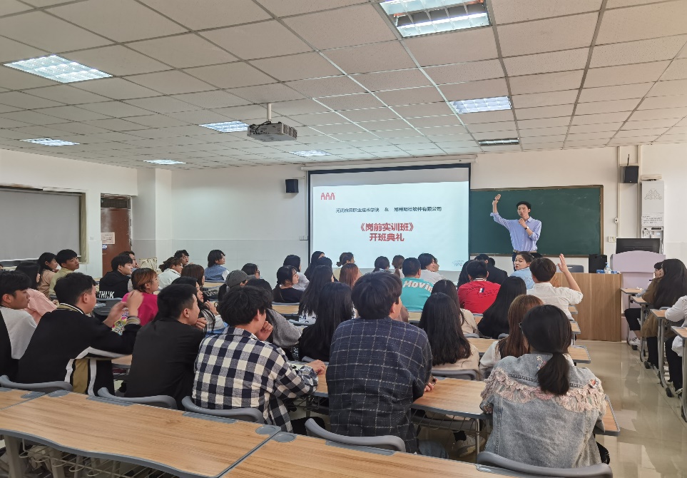 数媒艺术教研室主任降华做了总结性发言,表明校企合作岗前培训对于学生的就业发展是非常有帮助的,不仅助于学生明确自我定位和就业方向的选择,为各位同学铺设校园走向社会的桥梁,助力学生与顶岗实习岗位的完美对接。
