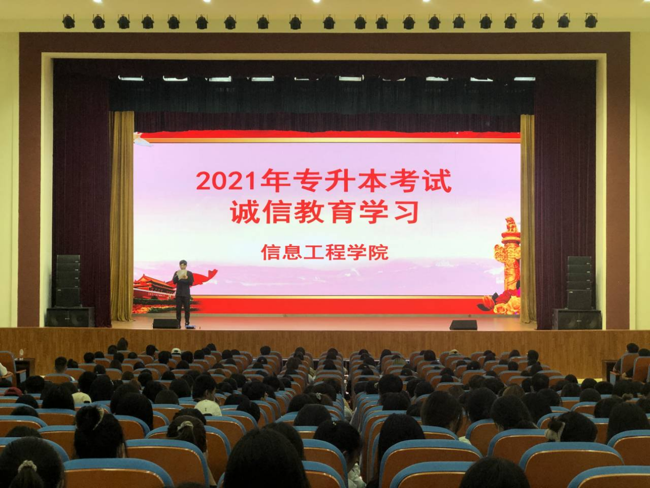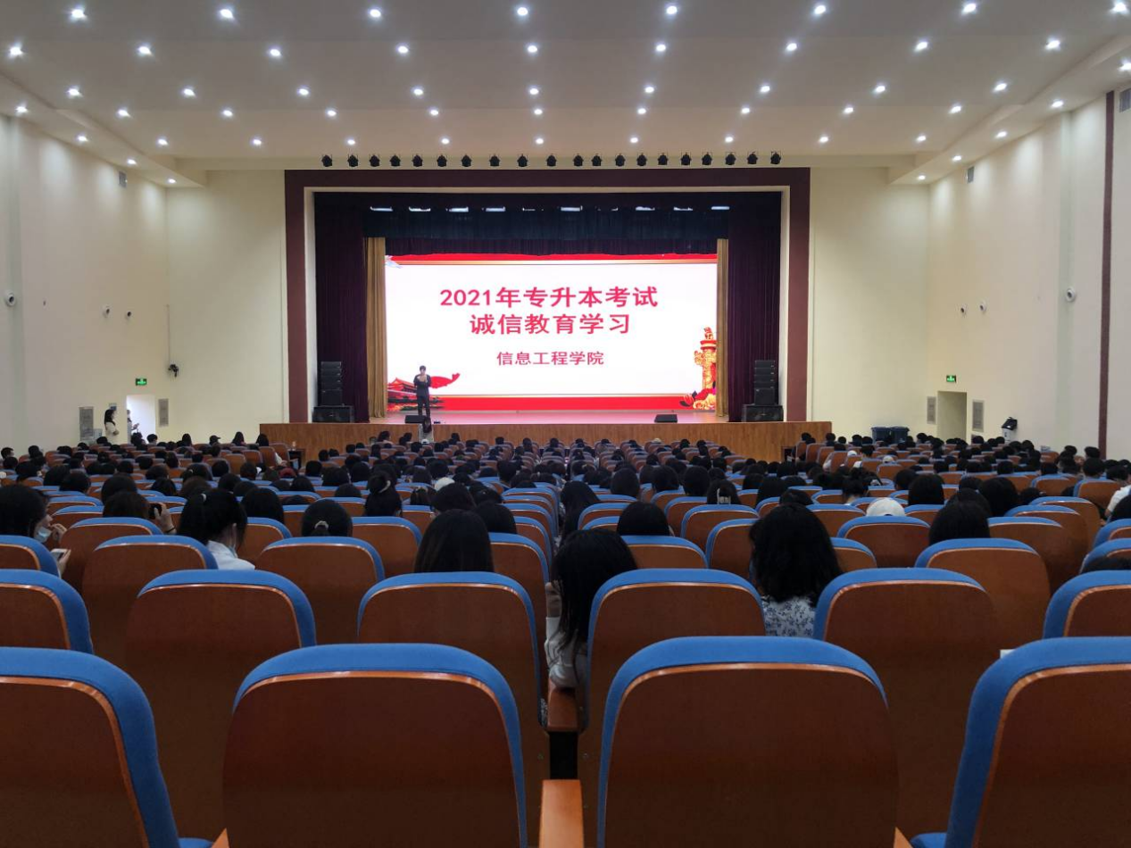 会议首先向同学们传达了省、市招办以及学院专升本考试相关文件精神;带领考生学习《河南省2021年普通高校招生考生诚信承诺书》并提醒同学们仔细阅读相关内容,并严格遵守考纪考规,自觉遵守考试秩序。