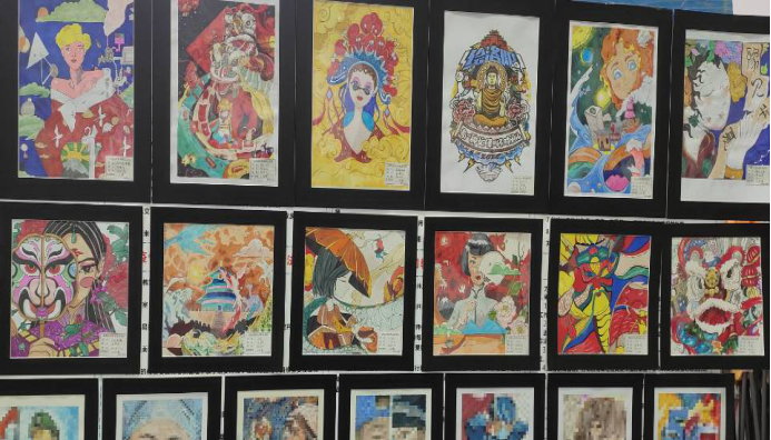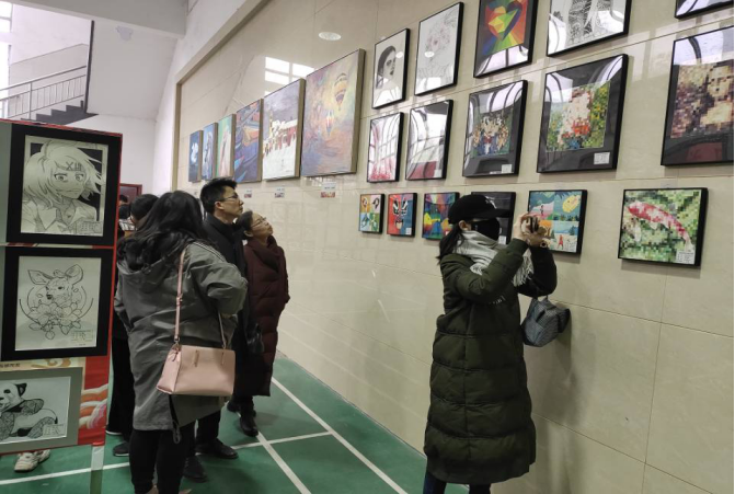 为丰富校园文化建设,推进同学们对文化艺术的追求,今年会jinnianhui官网数媒艺术设计教研室的孙星老师、王欣慰老师、王碧琳老师以及张蔚老师,策划了19、20级动漫专业和视传专业学生美术作品展览活动,在学校礼堂前厅活动中心开展了为期5天的师生美术作品展。