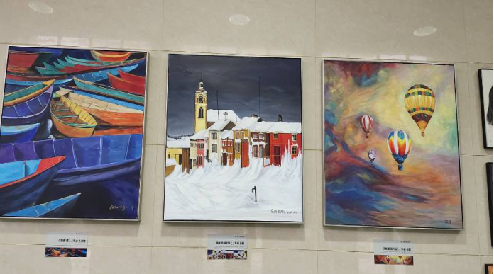 这次活动同学们分工合作,积极准备,筛选出了众多优秀作品。这次展览涵盖油画、丙烯画、水粉画、水彩画、素描、线描,六个画种,内容题材包含抗疫精神、社会主义核心价值观、河南地方文化特色、民俗文化等,具有探索精神和时代精神。