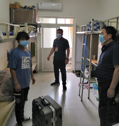 30日下午学院领导一行详细查看了学生宿舍情况,并与返校学生亲切交谈,了解学生返校报到情况,叮嘱学生返校两周内注意个人防疫安全,认真完成毕业设计。学生对学院的返校安排感到十分满意,并表示一定会认真学习完成毕业设计,为踏上工作岗位做好充足准备。