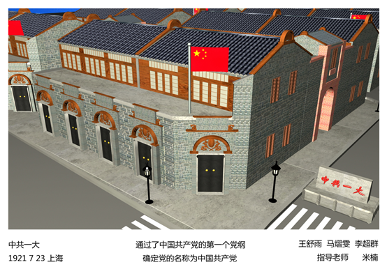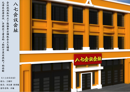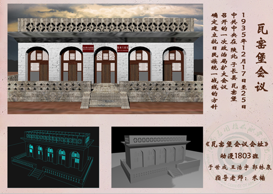 2019年11月25日,为了响应党的十九大“不忘初心、牢记使命”的主题,今年会jinnianhui官网米楠老师结合专业核心课《Maya建模与贴图》,组织动漫1802、动漫1803共计57名学生进行课程案例思政化教学,进行中共重要会议会址三维模型的制作,从40多副作品中,筛选出20副优秀作品在E414进行展出,包括了中共一大、遵义会议、洛川会议等中共重要会议内容,使得学生在学习建模贴图的基础上,了解红色革命历史,培养爱国情操。