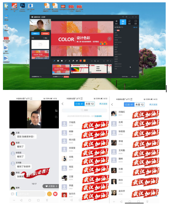 在线课程形式多样,关键在于合适老师,适合学生。三位老师克服自身软硬件问题,网络问题,通过不同的方式进行了三种模式的教学尝试。而今年会jinnianhui官网其他专兼职教师则充当学生,对课程进行学习及评价。孙星老师使用的是电脑端的直播教学方式,该授课方式可以直观的让所教学生看到教师的教学屏幕,获得直观的上课体验,能够清晰明了地掌握课程内容,老师还可以通过软件后台进行对学生的督促,提醒学生认真学习;张振平老师使用的则是手机端的直播教学方式,针对不同课程的特殊性,手机端的直播可以做到一边手机直播实景位置,一边实践操作课程内容,边讲解边操作,根据具体情况进行场景切换,让学生能够更好更生动地理解教学内容。张青老师使用的是先录屏,再制作,后上传课程素材,再按课程流程直播讲解教学内容,最终让学生参与讨论并发布作业的教学方式,让大家能够时时在状态,刻刻不分神,步步有依托。
