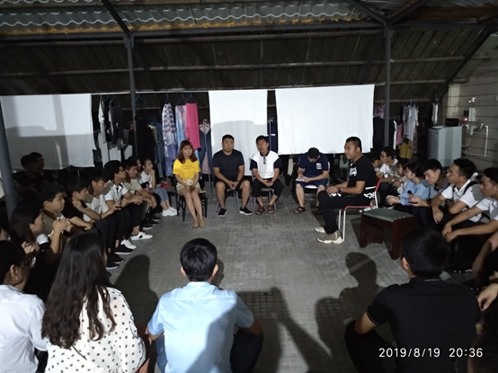 学生下班后,在学生住宿宾馆天台召开座谈会