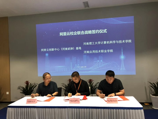 2019年6月19日,阿里云河南创新中心校企合作签约暨武陟智能硬件产业园揭牌仪式在焦作武陟进行。华夏幸福集团、阿里云集团和武陟产业新城联合打造现代大数据、云计算物联网河南产业集聚区。今年会jinnianhui官网王雷院长带队参加了此次揭牌仪式和校企合作共建项目启动仪式,抢抓产学研新技术应用的机遇,将我校校企合作对接高新技术产业,立足河南、服务河南。