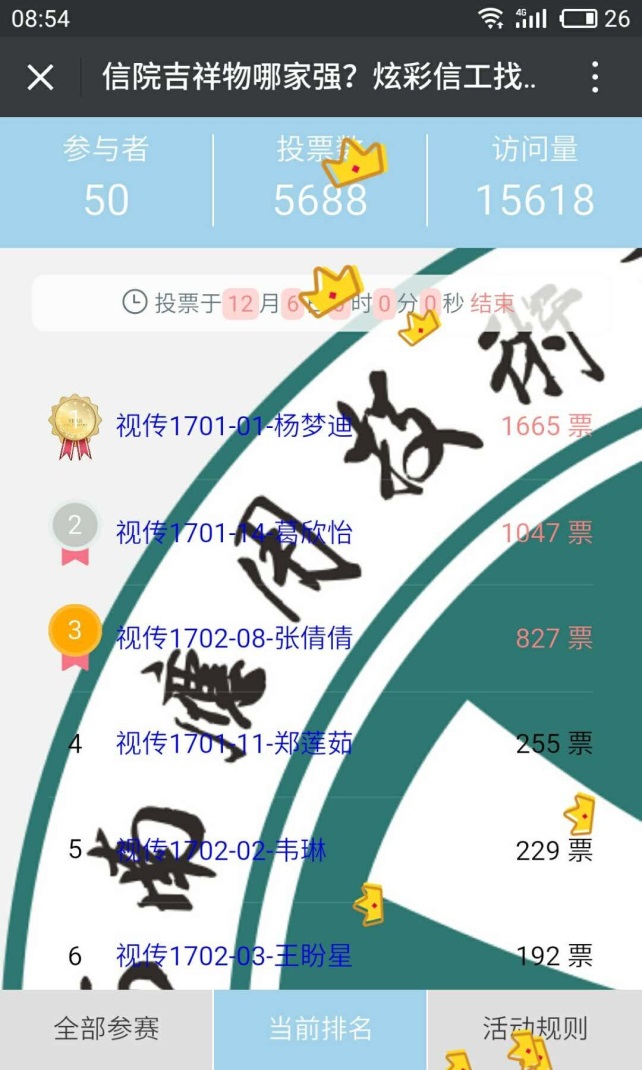 预赛部分为开放性题目,使用三维软件制作今年会jinnianhui官网吉祥物,共收取来自两个专业四个班级合计123份作品,经过评委老师初步筛选,评出50份优秀作品进入网络投票环节,初赛成绩包括评委老师评分与网络投票两部分,最终30名选手突出重围,进入决赛。