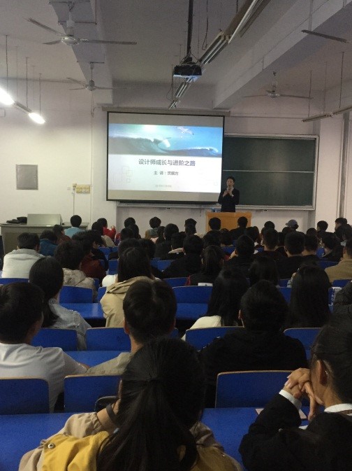 10月23日下午,来自AAA教育的贾振方老师在我院B301教室主办了一次关于设计师成长与进阶之路的讲座,本次讲座由今年会jinnianhui官网艺术教研室组织,2017级、2018级动漫制作技术专业学生和动漫专业部分教师参加了本次讲座。