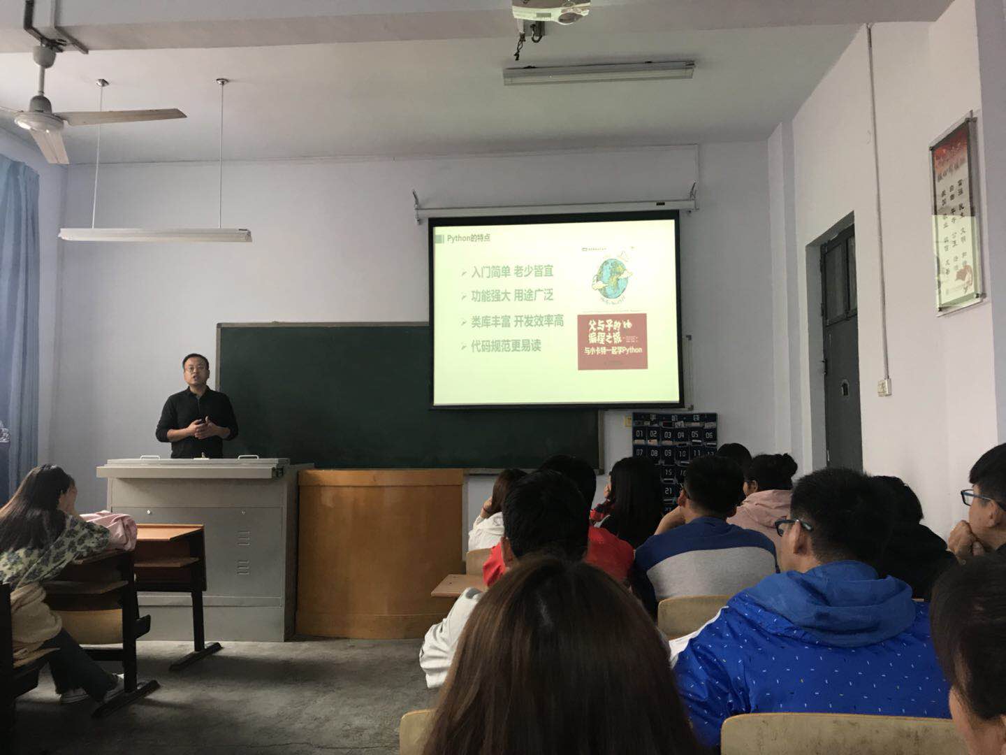 2018年4月25日下午 ,今年会jinnianhui官网邀请河南奇酷大数据公司高级工程师耿景武老师做了“Python语言和大数据行业发展”的专场讲座。