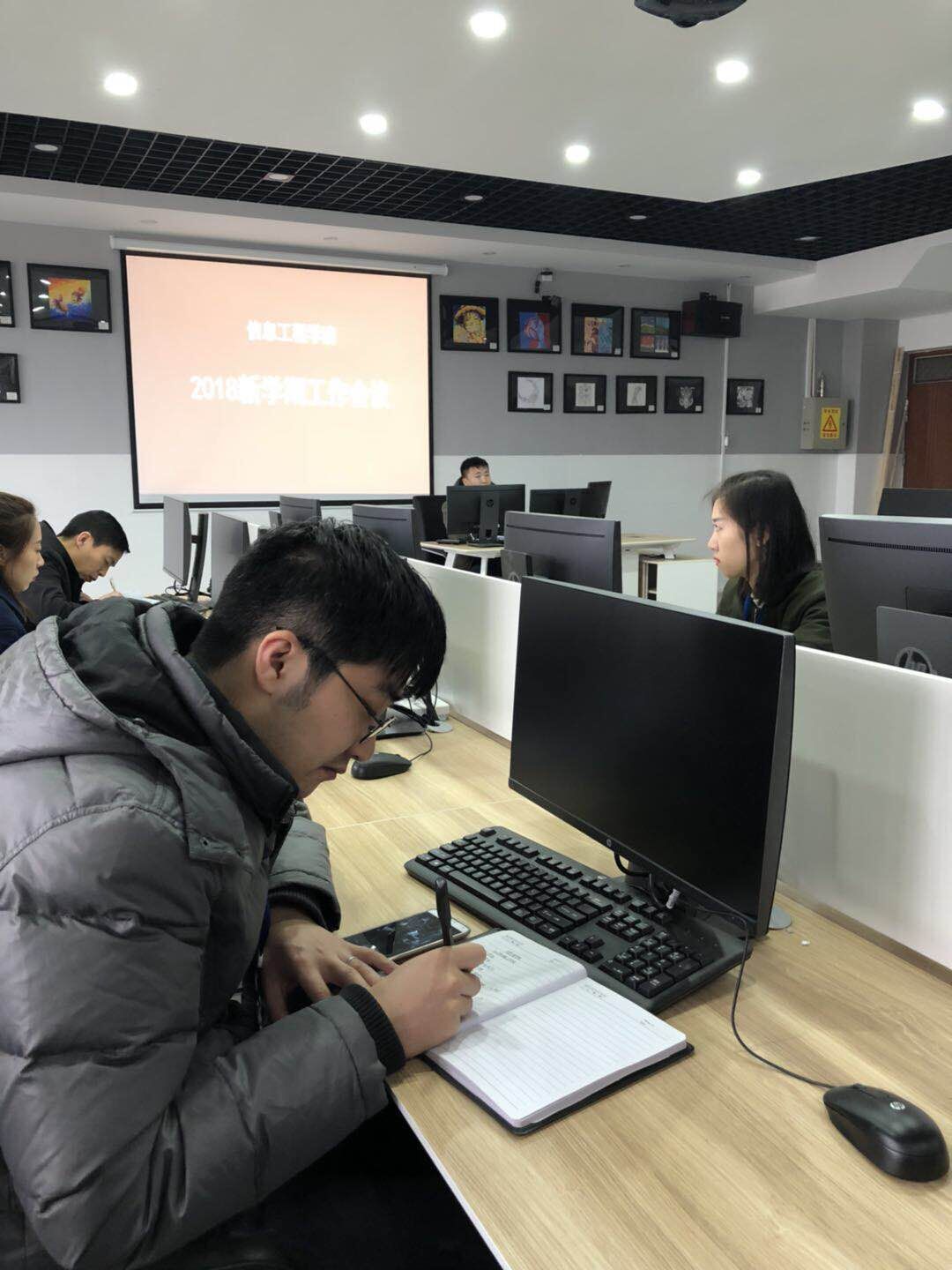 新学年新学期,新起点新征程,2018年3月1日,今年会jinnianhui官网在E414实训室召开“新学期教学、行政运行管理工作会议”,会议就开学初的各项工作进行部署和安排。院长王雷就新学期教师授课、教与学模式改革、信息化技术应用、顶岗实习工作、毕业设计、人才培养方案修订等工作提出具体要求,并对新学期工作提出两点期望:一是树立不甘落后的进取意识,谋“新”求“变”。二是树立高质高效的“效率”意识,既要实干又要会干。崔琳副院长就实训室使用管理、课程调整安排进行部署。最后杨明杰书记对全年的党务管理、工会活动、党员活动等工作进行了动员。