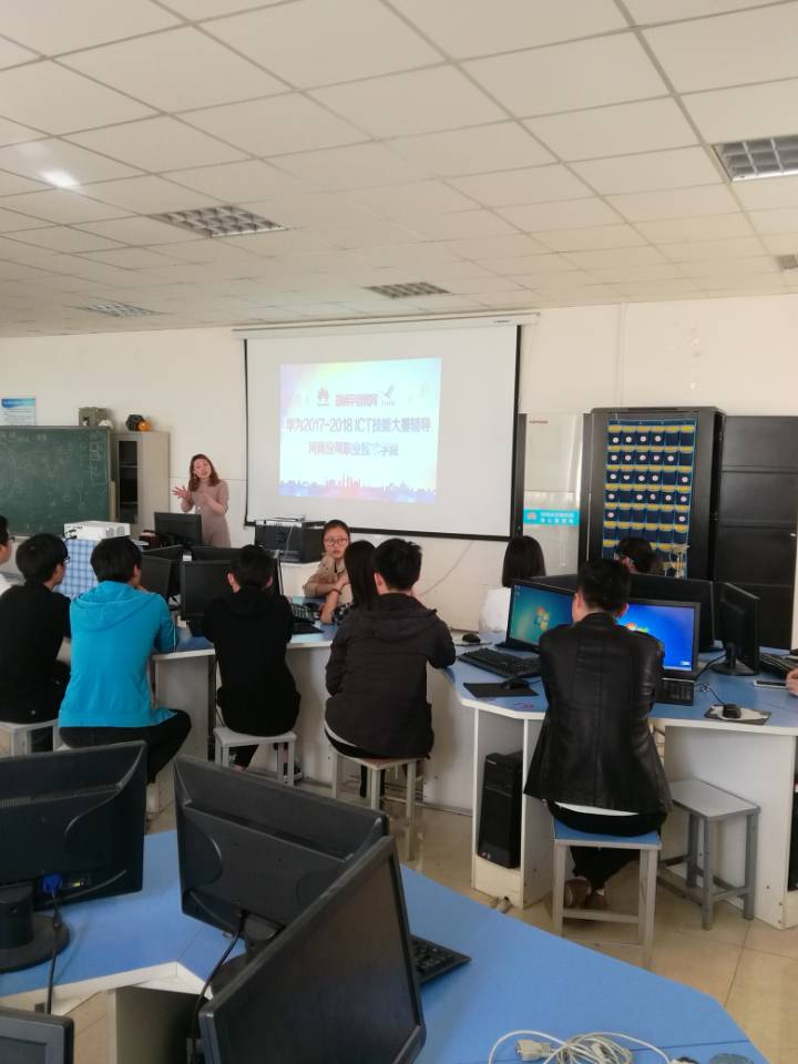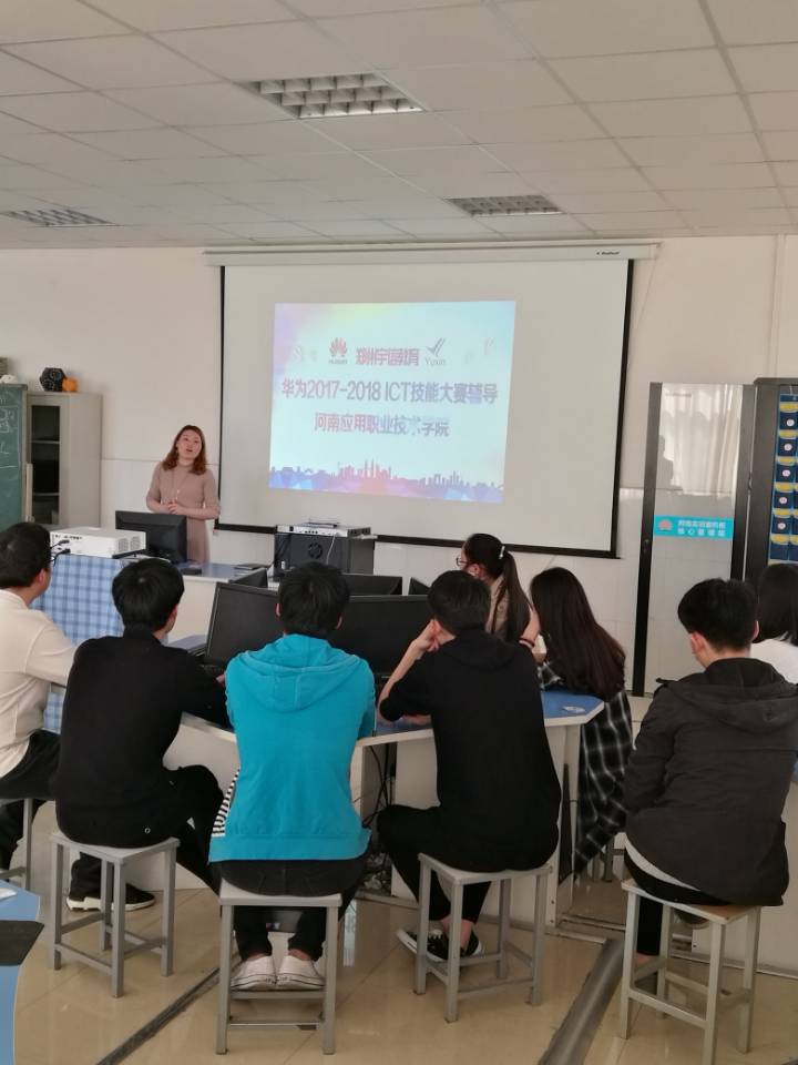2018年3月27日,针对我院报名参加华为全国ICT大赛的学生,华为授权郑州宇信网络培训有限公司副校长、高级讲师张鑫前来我院为学生进行赛前辅导。本次竞赛已经教务处备案,参赛学生主要为我院2016级在校学生,学生们参赛积极性很高,经协商,该公司专程派出骨干教师为我院学生进行赛前培训,受到同学们的好评,预祝我院网络健儿取得优异成绩!