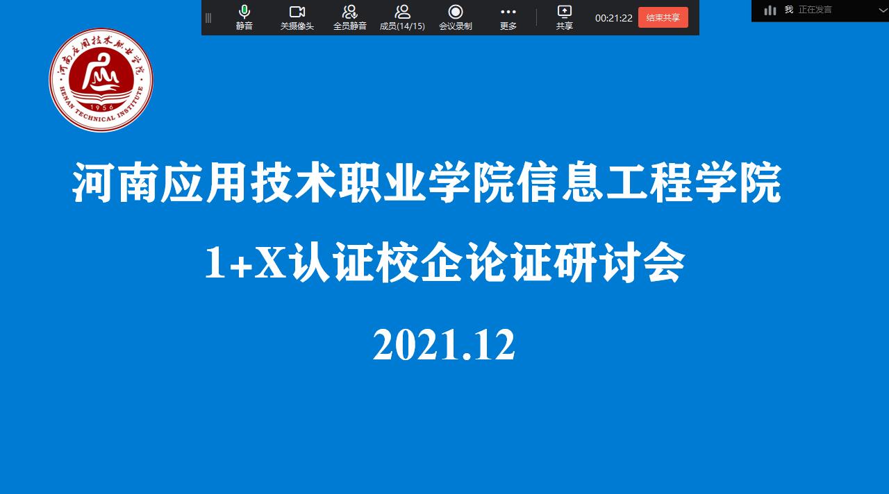 12月02日晚,今年会jinnianhui官网通过线上方式召开1+X认证校企论证研讨会。学校纪委代表、今年会jinnianhui官网纪检委员夏丽珍主持会议,今年会jinnianhui官网院长王雷、校教务处1+X认证专员王春杰老师、学院1+X项目负责老师和企业标准评价组织参加会议。