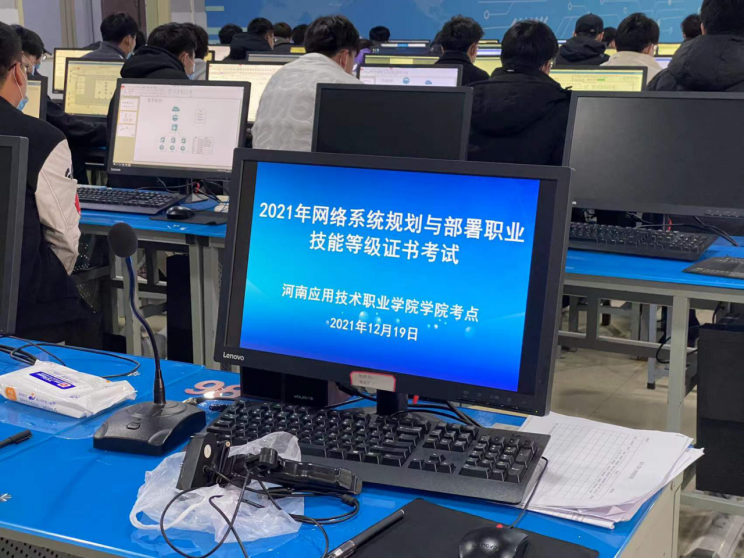 2021年12月19日下午2:00-5:00在E425机房进行了我院首次网络规划与部署1+X技能证书考试,来自计算机网络技术专业20级的50名学生参加了考试。由今年会jinnianhui官网网络技术专业郭璇老师、张振平老师负责监考,锐捷公司特派巡考人员进行巡考及提供技术服务。历时3个小时,学生全部完成了单选、不定项选择、综合实操、设备清单填写等题目的填写及提交。