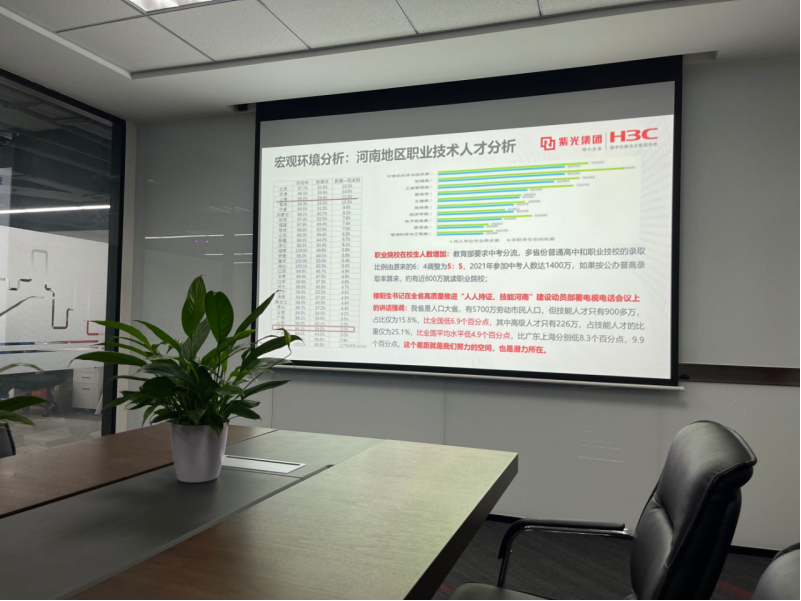 随后,校企双方就大数据、人工智能人才培养、数字工匠特色班和提质培优校企合作模式等方面进行了深入会谈。新华三相关业务负责人首先分享了公司在教育领域的创新和实践。长期密切关注着教育信息化的发展趋势,新华三不断利用自身的行业经验和研发能力,为教育信息化建设提供技术支撑。作为高校大数据领域第一品牌,新华三一方面支持着校园数字化的建设进程,另一方面,也加速了云及大数据技术在教育领域的融合与落地。与会人员均达成共识:如何促进教育与云计算、物联网、大数据等新IT技术的结合,全面推动教育信息化,是整个教育信息化产业都在思考的问题。