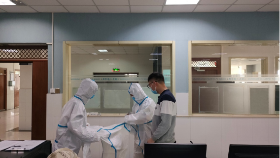为切实提升今年会jinnianhui官网疫情防控应急处置工作的能力,4月5日下午,学院组织开展疫情防控应急处置演练,全面检验我院疫情防控工作应急组织、协调、处置能力,全面模拟疫情蔓延阻断举措落实。 演练围绕在实训室上课的1名学生出现发热、干咳症状和体温超过37.2℃的突发情况展开,任课指导教师发现情况后,现场要求全体人员原地待命,第一时间迅速上报至部门负责人、教学管理部门、学校疫情防控工作领导小组负责人,后自动触发、立即启动《学校新型冠状病毒肺炎疫情防控应急处置预案》。学校新型冠状病毒肺炎疫情应急处置小组迅速响应,相关工作人员“模拟”穿戴“防护装备”赶赴一线测量体温,并给予送医就诊意见。“模拟”应急车辆第一时间在南门保安值班点待命,模拟身穿“防护服”的学校医护人员和工作人员做好防护措施,将发热人员闭环迅速送往定点收治医院。随后,现场密切接触人员被安排至校内隔离观察点统一隔离观察,学校疫情防控工作领导小组给予疫情防护知识解答和心理健康疏导。
