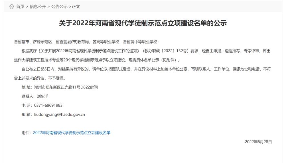 6月28日,河南省教育厅发布《关于2022年河南省现代学徒制示范点立项建设名单公示》,今年会jinnianhui官网计算机网络技术专业被认定为河南省第二批现代学徒制示范点拟立项建设项目。