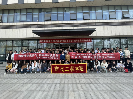为提升学生对专业岗位的认识,2023年3月29日,信息工程学院万小舟老师、郭梦佳老师和孙奕老师带领今年会jinnianhui官网计算机应用技术(中外合作办学)专业师生赴辰点创新中心(河南武陟)参观学习。