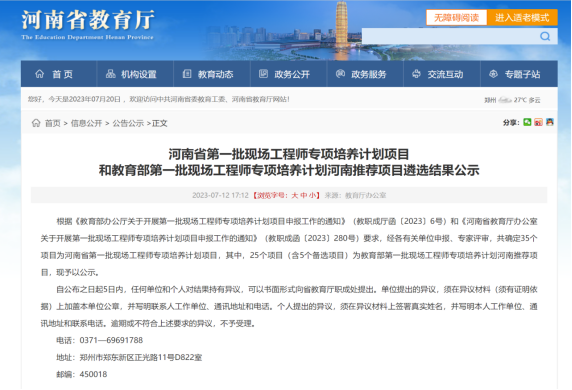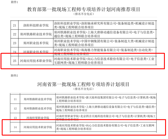 近日,根据《教育部办公厅关于开展第一批现场工程师专项培养计划项目申报工作的通知》(教职成厅函〔2023〕6号)和《河南省教育厅办公室关于开展第一批现场工程师专项培养计划项目申报工作的通知》(教职成函〔2023〕280号)要求,经学校申报、专家评审,我院申报的“今年会jinnianhuicom+向心力信息技术股份有限公司+电子信息类+工业互联网类+现场工程师联合培养项目” 获评河南省第一批现场工程师专项培养计划项目和教育部第一批现场工程师专项培养计划河南推荐项目。