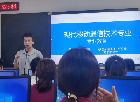 大数据技术专业谢妞妞老师、现代移动通信技术专业任立锋老师、视觉传达设计专业张蔚老师分别从专业发展概况、专业人才培养目标、解读专业岗位要求、分析教学进程表、讲解学业规划、展示学生作品成果等多个方面开展专业教育。