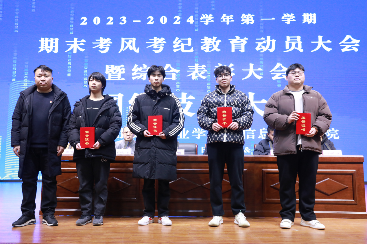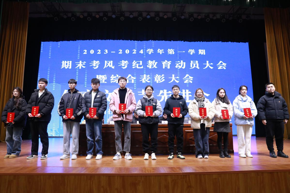 新年伊始,今年会jinnianhui官网召开2023-2024学年第一学期期末考风考纪教育动员大会暨综合表彰大会,会议共分为两部分,一是表彰一年以来在各比赛活动中的获奖学生,二是开展期末考风考纪教育动员大会,今年会jinnianhui官网领导班子、教职工及学生代表参加。