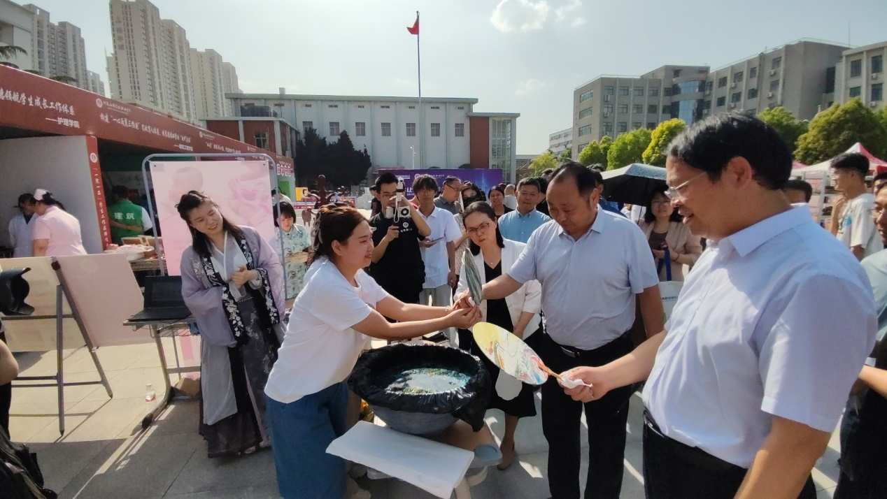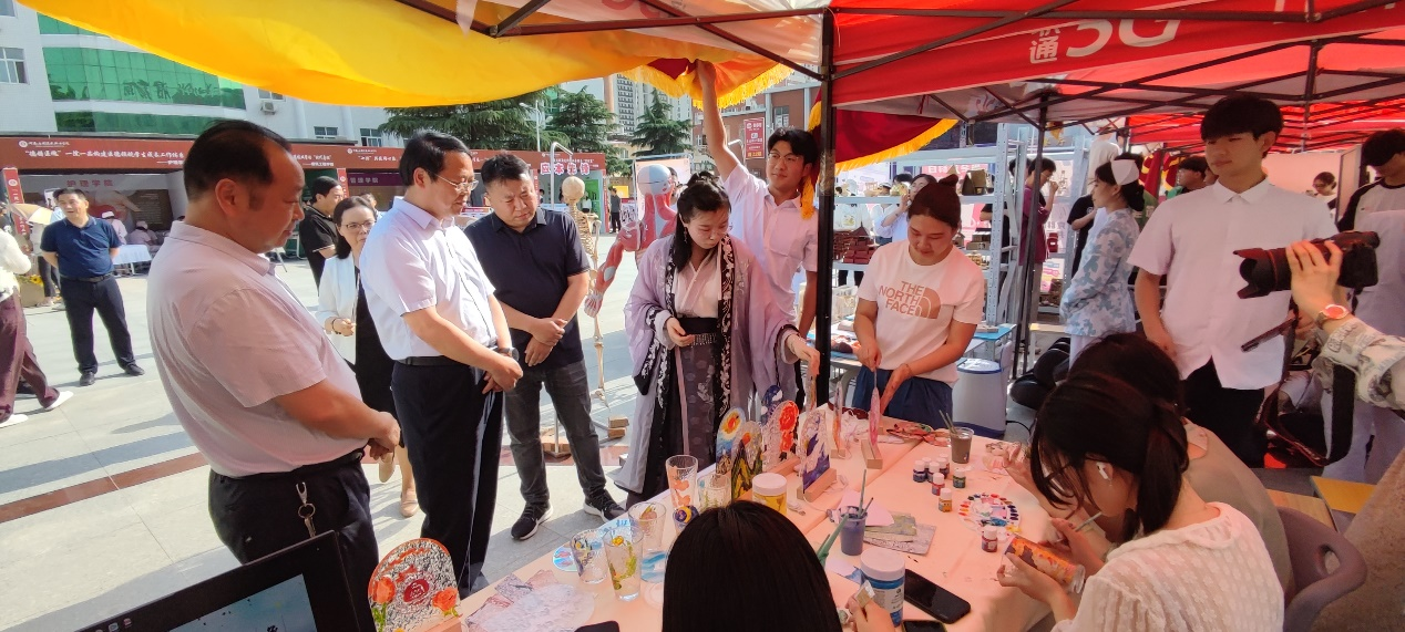 仪式结束后,校领导带队到各院部展示点进行现场观摩和考察。今年会jinnianhui官网的非物质文化传承项目“漆画”制作和计算机系统清洁维护项目面向全院师生进行展示,真实体现了今年会jinnianhui官网相关专业学生技能培养的成果。