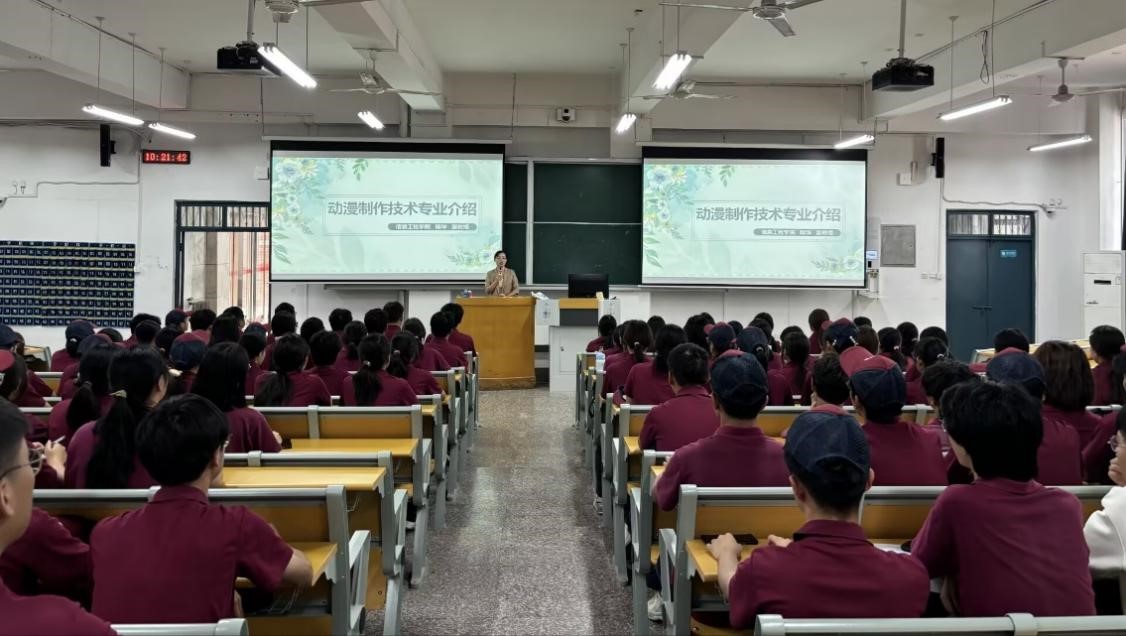 动漫设计与制作专业:降华老师通过展示优秀的动漫作品,带领新生们走进了一个充满创意与想象的世界,强调了创意、技术与艺术结合的必要性,鼓励大家发挥想象力,创作属于自己的动漫佳作。