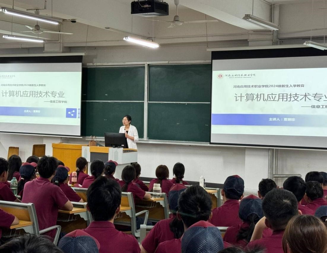 活动期间,学院教研室主任、专业负责人围绕各专业的核心内容与未来趋势,为新生们带来了精彩纷呈的系列讲座。针对计算机应用技术、人工智能技术应用、计算机网络技术、动漫设计与制作、大数据技术专业、现代移动通信技术专业、视觉传达设计专业以及计算机应用技术(中加合作办学方向)等不同专业,老师们从专业背景、课程设置、就业前景等多个角度进行了深入解析和生动讲解。他们不仅传授了专业知识,还分享了行业最新动态和未来发展趋势,让新生们对所学专业有了更加全面和深入的认识。