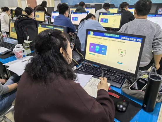 本次培训内容分为通信UOS桌面系统应用、服务器系统部署与配置、桌面应用开发三个模块,参培教师完成学习后进行认证考试,考取统信UOS技术认证桌面工程师和系统服务工程师双认证。参训教师在2天的培训过程中,围绕技能训练、信创政策解读、信创产业发展方向、教育信创的应用案例、UOS桌面环境应用等内容进行了深入学习,通过学习和交流,大家对信创政策、国家信创产业的发展以及国产操作系统的日常办公、系统管理使用有了更进一步的认识,充分感受到信创人才的培养迫在眉睫。
