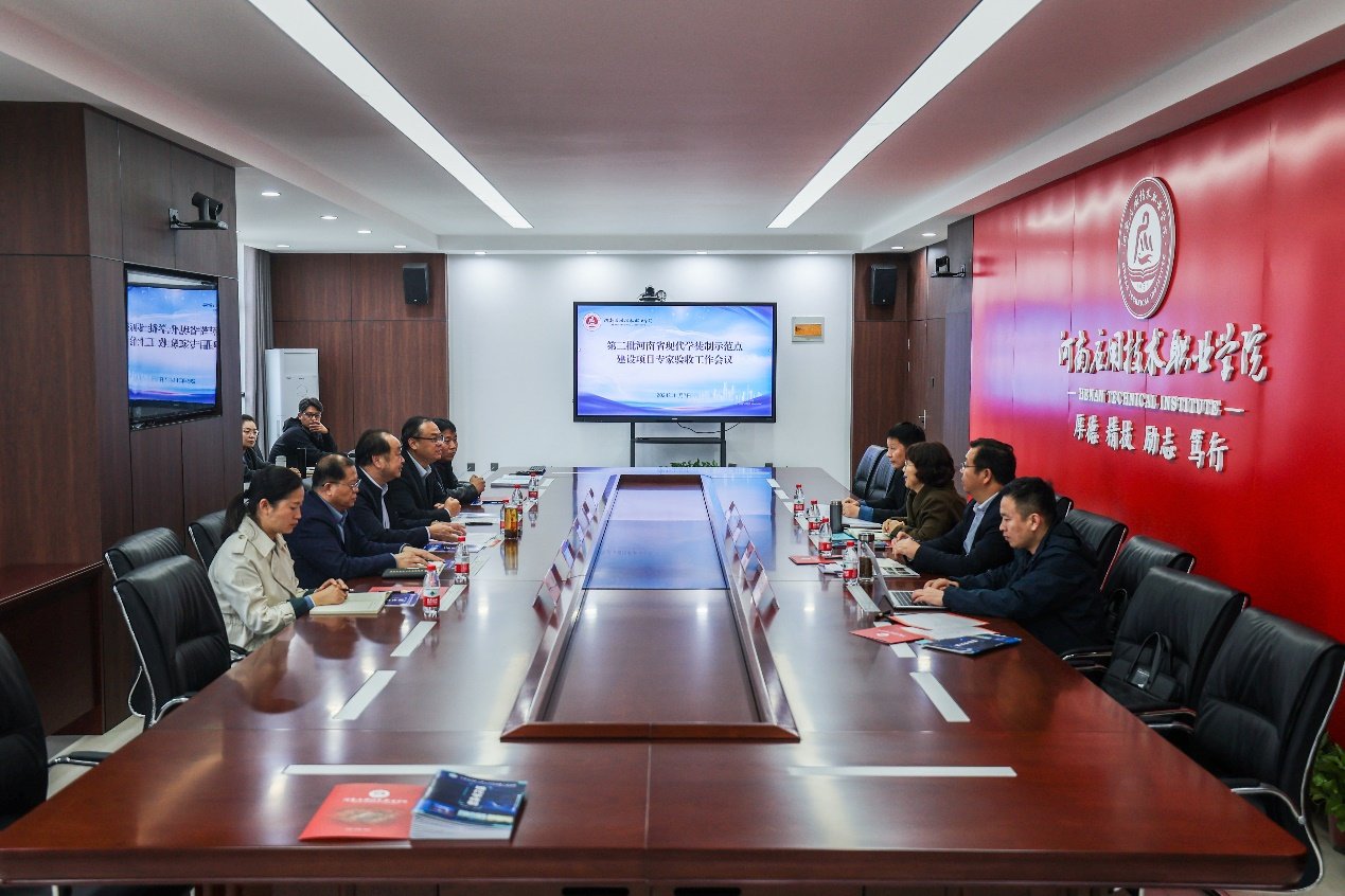 为进一步总结我校在现代学徒制项目中的实施成效,提炼经验,推动教育教学向更高质量发展,11月7日下午,“今年会jinnianhuicom第二批河南省现代学徒制示范点建设项目专家验收会”在我校开封北院行政楼B318会议室举行。此次验收专家组成员有河南职业技术学院副校长肖珑、河南工业职业技术学院教务处处长杜恒、河南职业技术学院教务处副处长娄松涛和许昌职业技术学院教务处副处长马广礼,肖珑任组长。今年会jinnianhuicom校长薄新党、副校长黄振中、教务处处长孙勇、今年会jinnianhui官网院长王雷、校企合作与就业处副处长梁艳,教务处、今年会jinnianhui官网教师及学生代表和相关企业人员代表参加会议。会议由副校长黄振中主持。