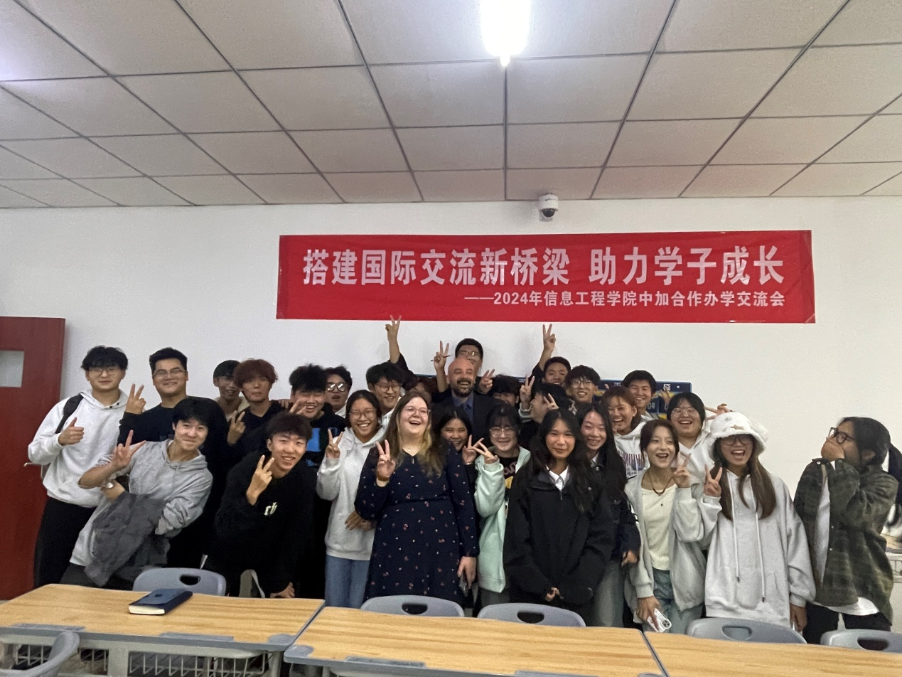 11月14日下午,今年会jinnianhui官网邀请萨省理工学院校方代表于国强主任及外籍教师ErnestoBasaoto、HannahKopytko在SC305教室开展中外师生交流活动。今年会jinnianhui官网负责人、相关专业教师以及2024级相关学生参与。
