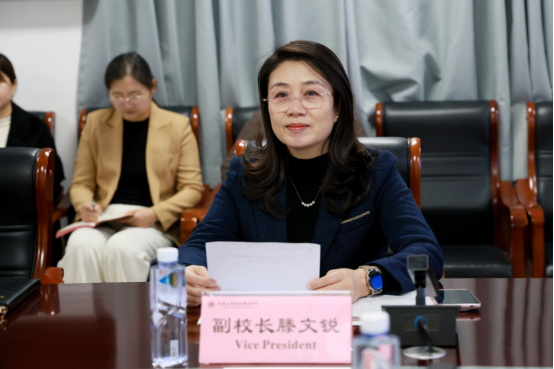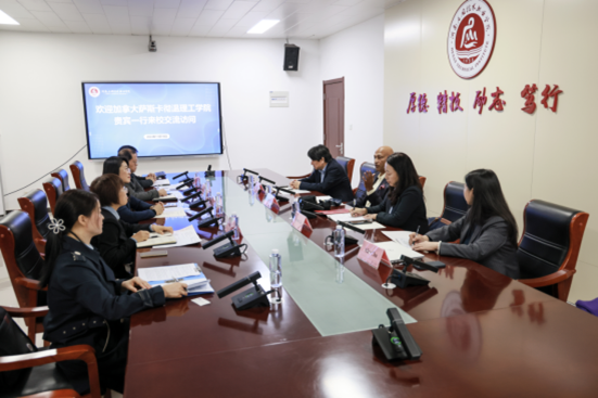 滕文锐对Dr.Thevi Pather一行的来访表示欢迎,并介绍了学校的基本情况。她指出,学校高度重视国际化办学,近年来,在国际化师资培训、职业标准开发、专业资源建设等多个方面取得了显著成效,期待未来能与加拿大高校、科研机构建立良好的合作关系,共同探索国际化办学新模式,共同开创“职教出海”新局面。