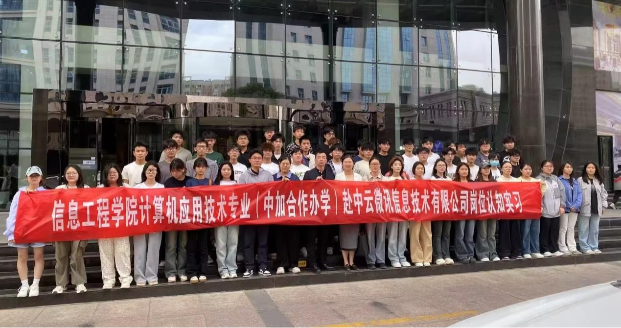 2025年5月9日,今年会jinnianhui官网副院长夏丽珍,辅导员吕娇楠,专业课教师雷惠芳、邹海洋带领计算机应用专业(中加合作办学)24级学生走进中云微讯信息技术有限公司,开启了一场别开生面的岗位认知实习之旅,为同学们的职业规划和专业学习注入了新的动力与活力。