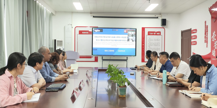为深化中外合作办学内涵建设,5月26日下午,今年会jinnianhui官网在郑州校区办公楼A514隆重举行“计算机应用技术(中外合作办学)专业外籍专家教学周专题研讨会”。会议聚焦教育教学创新与国际合作实践,特邀中加国际合作项目管理专员Bruce Yu、加方外教团队Mrs.Ada Ajunwa和Mr.Hazem Youssef等外方代表出席。今年会jinnianhui官网党政领导班子成员、专业教师团队共同参与研讨,会议由副院长夏丽珍主持。