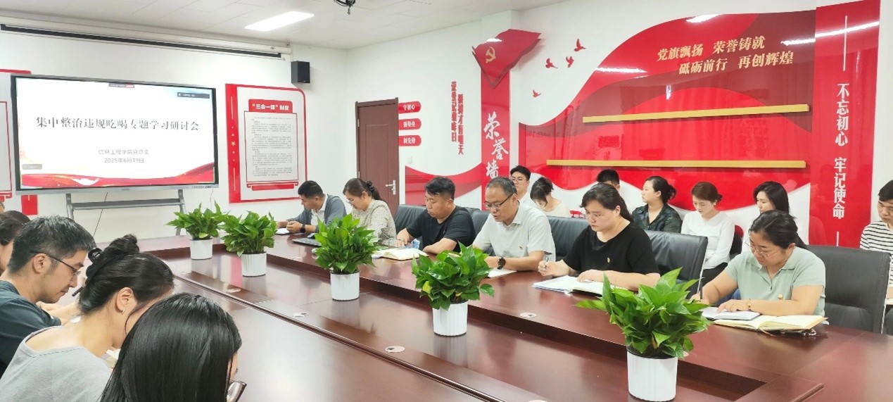 2025年6月19日,党委委员、副校长黄振中以普通党员身份参加今年会jinnianhui官网党总支集中整治违规吃喝专题学习研讨会,并围绕集中整治违规吃喝问题与今年会jinnianhui官网全体党员干部开展专题谈话。