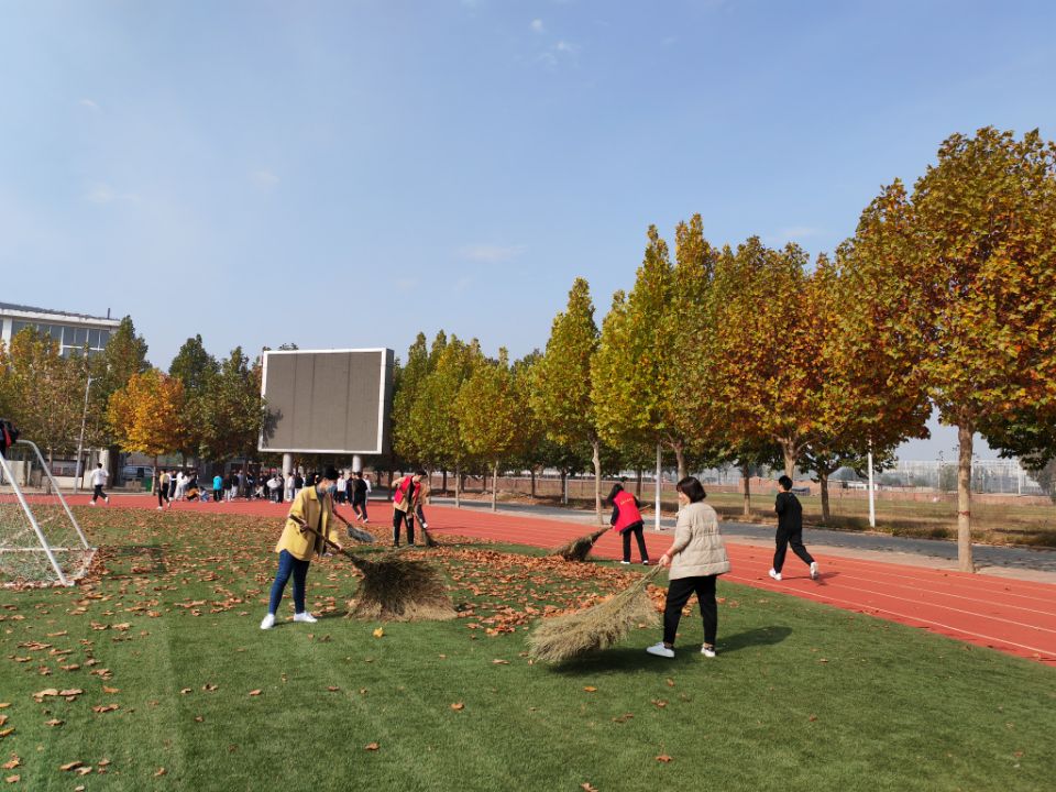 活动伊始,参与活动的全体成员在操场进行集合,依次领取扫帚、簸箕、消杀喷壶等清扫消杀工具,并在老师的安排下对操场、道路等公共卫生区域展开全面地卫生大扫除,大家分工合作,密切配合,对外面白色垃圾、烟头、树叶等垃圾进行细致的清扫。经过老师和同学们近两个小时的共同努力,校园公共环境卫生得到了很大的改善,让校园面貌焕然一新。