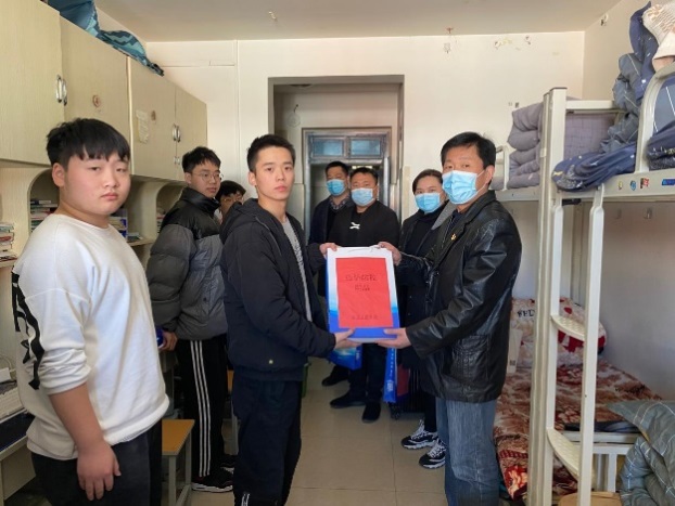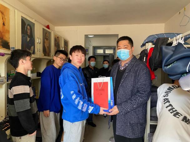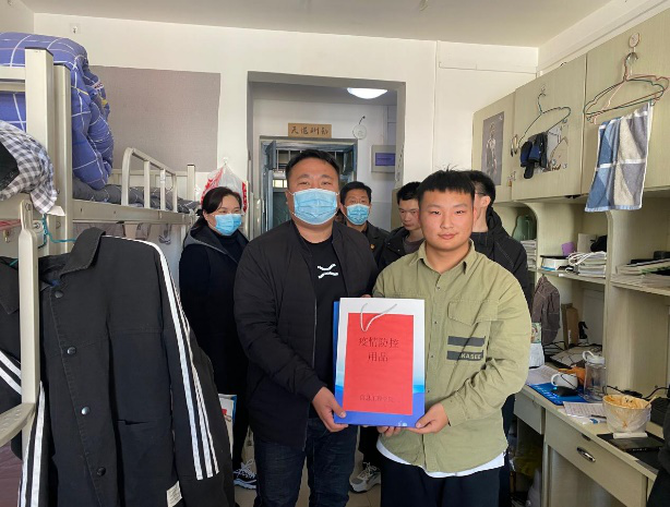 为进一步深化党史学习教育,扎实做好我为群众办实事专项工作,持续推进疫情防控常态化,切实把疫情阻断在校园之外,今年会jinnianhui官网把学生身体健康放在第一位,同时守护当前来之不易的疫情防控成果。2021年11月23日中午,今年会jinnianhui官网党总支书记楚斌带队,院长王雷、副院长崔琳和团总支书记赵源等一行数人,深入学生宿舍为学生发送防疫物资。