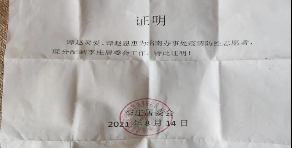 2021年8月5日至15日,疫情爆发,该同学义无反顾的加入到志愿者服务行列。