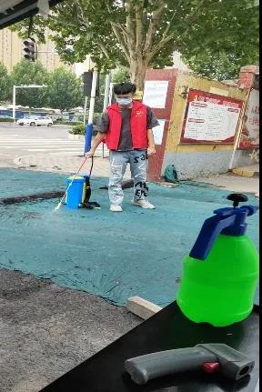该同学每天早上与志愿者们拿着消毒设备,对辖区楼道、出入口、公共场所进行大范围喷洒消毒,让潜在的病源传染隐患灭杀在防控之下,遏制疫情进步发展。防疫就是战场,该同学作为积极分子参加志愿者活动,严格把控,为小区居民站好岗,把好关。