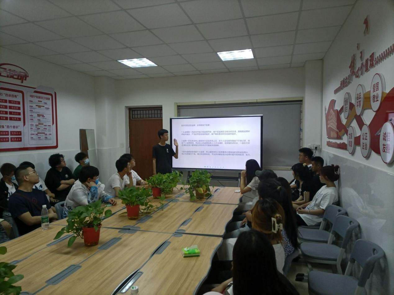 会议开始,万小舟老师简要的为大家介绍了“国家开发银行助学贷款”的资助定位和公益性质,随后详细的介绍了还款的相关事宜,包括正常还款,关键时间点,提前还款,逾期还款,并提醒同学们做好还款计划,关注有关通知和文件。