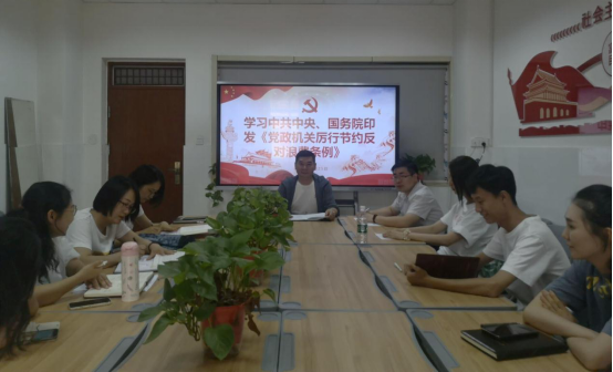 会上,张振平同志传达院领导的意见:一是要把《条例》作为党内一项基础性法规,认识实施《条例》的重大意义,牢固树立节约光荣、浪费可耻的思想观念,增强节约意识,把勤俭节约,反对浪费作为基本理念,落实到日常行为和实际工作中。二是要坚持党员模范带头,率先垂范,为人师表,大力弘扬艰苦奋斗优良传统,牢固树立勤俭节约意识,凡是《条例》禁止的坚决不做,要求别人做到的自己首先做到,从严要求,做出表率。三是要加大在学生中的宣传工作,把勤俭节约反对浪费作为教育工作长期秉持的工作原则和基本理念,真正落实到实际工作中和具体行动上,努力办好人民满意的教育。不断把厉行节约反对浪费工作做细、做实、做深入。