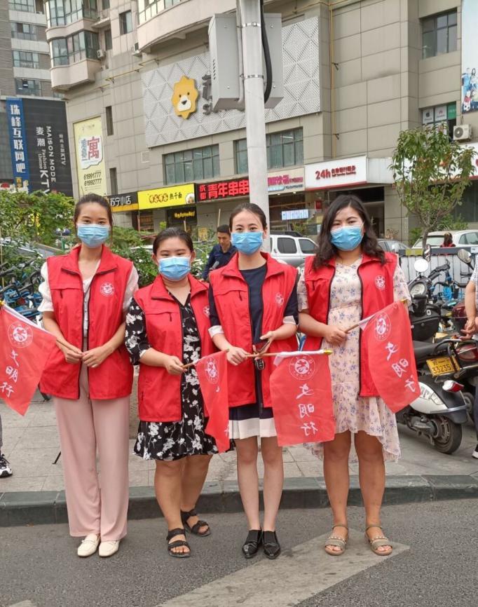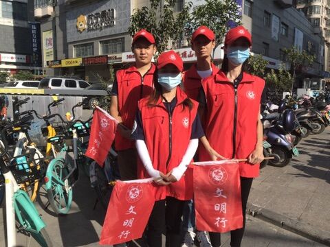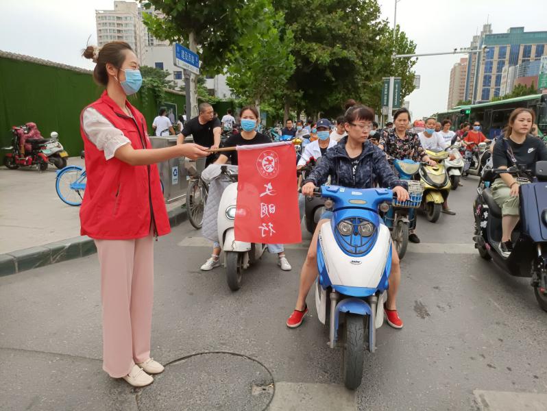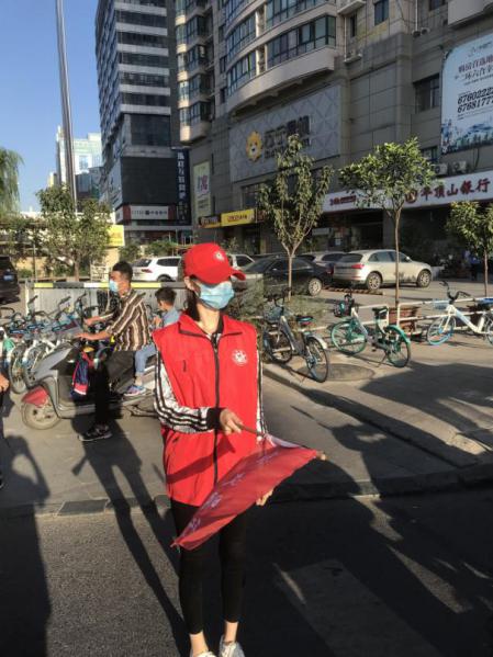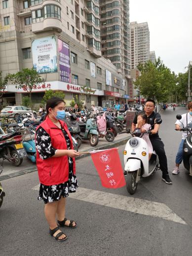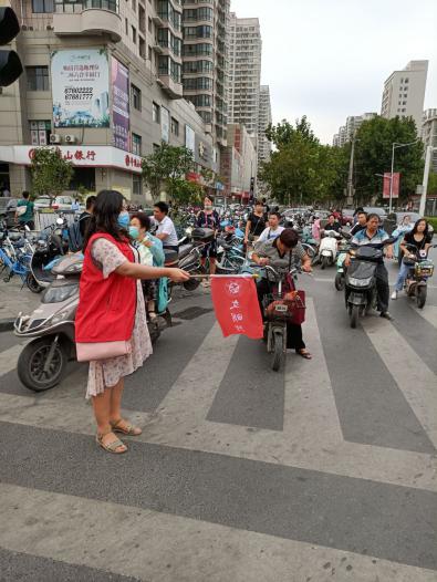 2020年9月17日,今年会jinnianhui官网志愿者教师代表万小舟、李晨、张杨、孙星、付媛冰、王碧琳、芦璐、张瑛在秦岭路与建设路交界处,开展道路执勤。教师们认真协助交警和协管员维护非机动车行车秩序,保证十字路口的交通通畅,同时又向身旁行人宣讲交通知识,热情耐心解答市民问询,认真履行岗位职责。