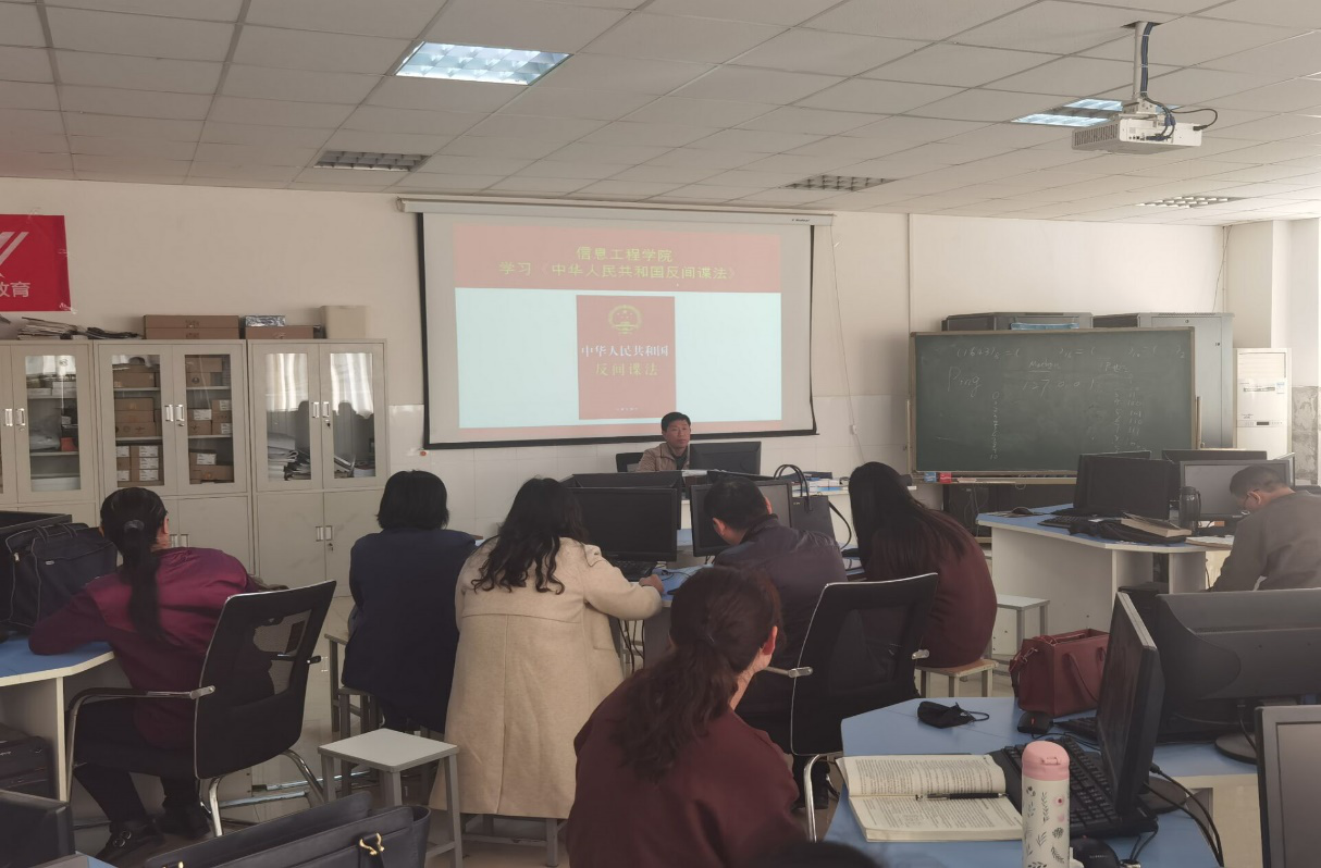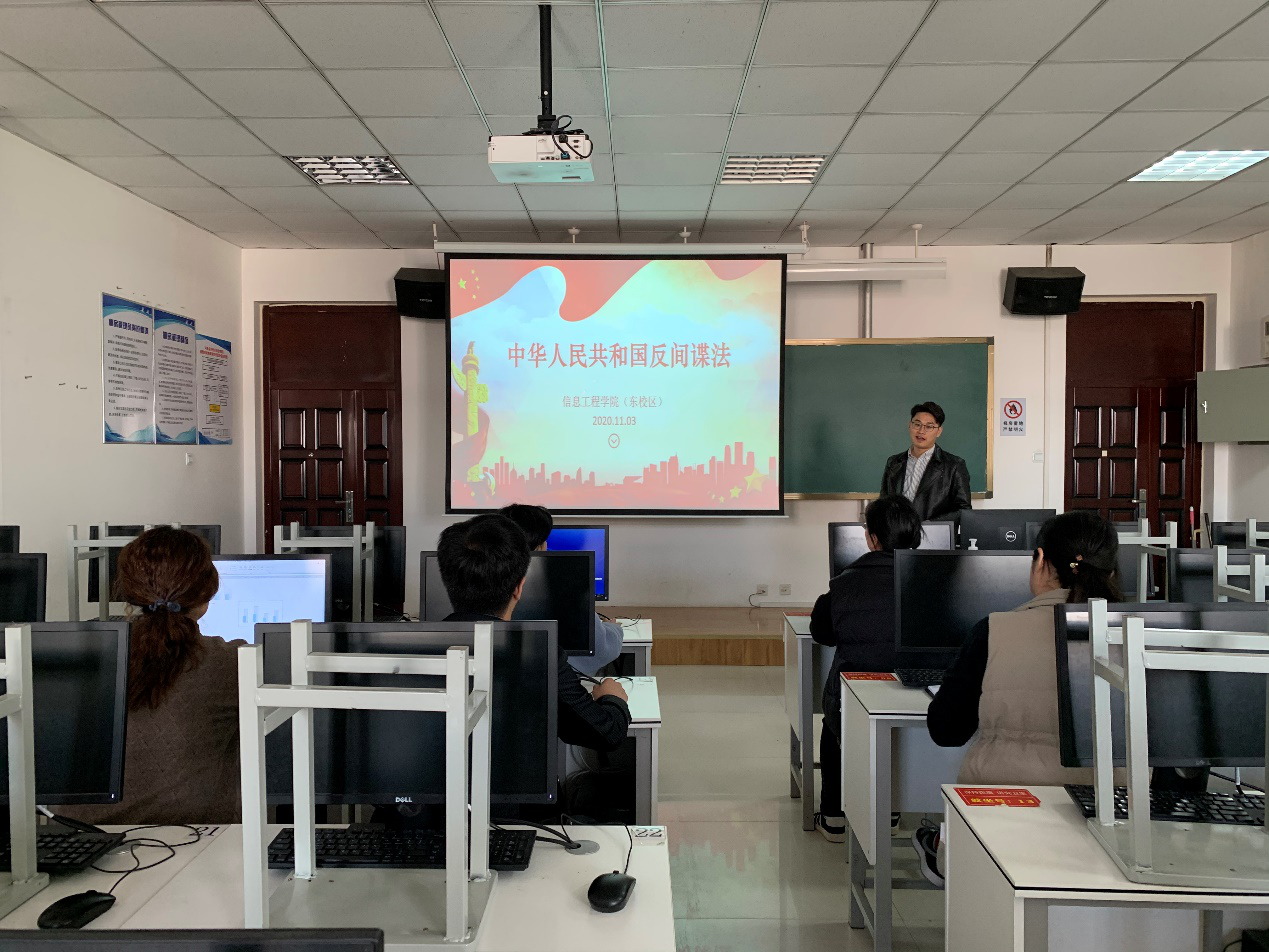 2020年11月3日下午,今年会jinnianhui官网党总支分别在西校区实训楼E416和东校区519机房组织全体教职工进行集中学习,学习《中华人民共和国反间谍法》,由楚斌书记主持领学。