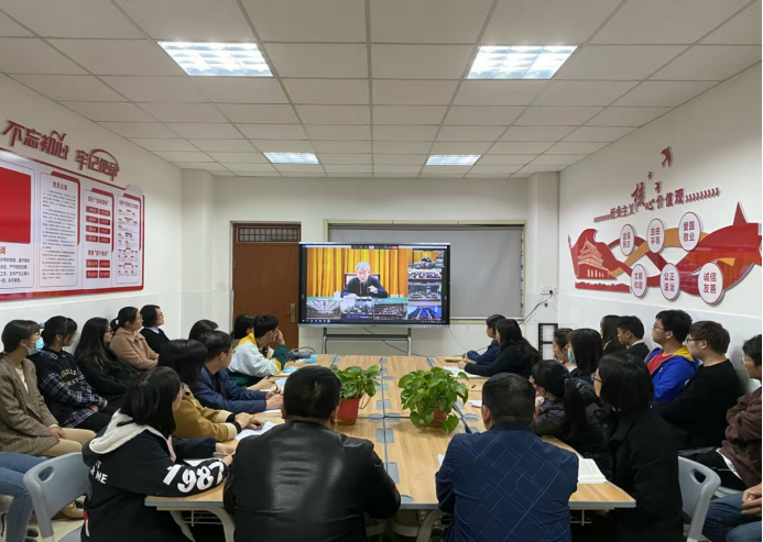 为了进一步在全院师生中掀起学习贯彻十九届五中全会精神的热潮,2020年11月12日下午,今年会jinnianhui官网党总支分别在东西校区线上线下认真组织收看教育部陈宝生部长11日下午十九届五中全会精神宣讲报告会视频。会议在E315今年会jinnianhui官网党总支党员活动室举行,会议现场参加人员共有教师16人、学生代表18人,线上会议采用钉钉会议直播软件组织学习,参加人员共有教师22人。