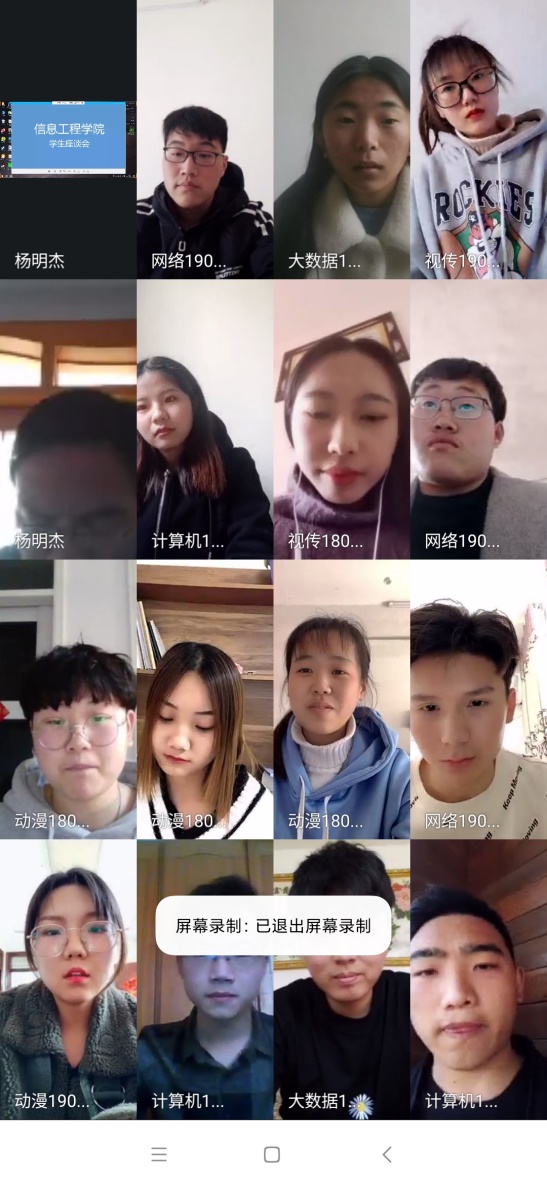 为进一步加强意识形态主阵地建设、深入了解学生思想政治状况。今年会jinnianhui官网于4月12日下午通过QQ视频开展线上“2020年学生思想政治状况座谈会”。本次会议由今年会jinnianhui官网党总支副书记杨明杰主持,参加本次线上会议的成员有:今年会jinnianhui官网团总支书记赵源老师及18、19级各班班干和团干。