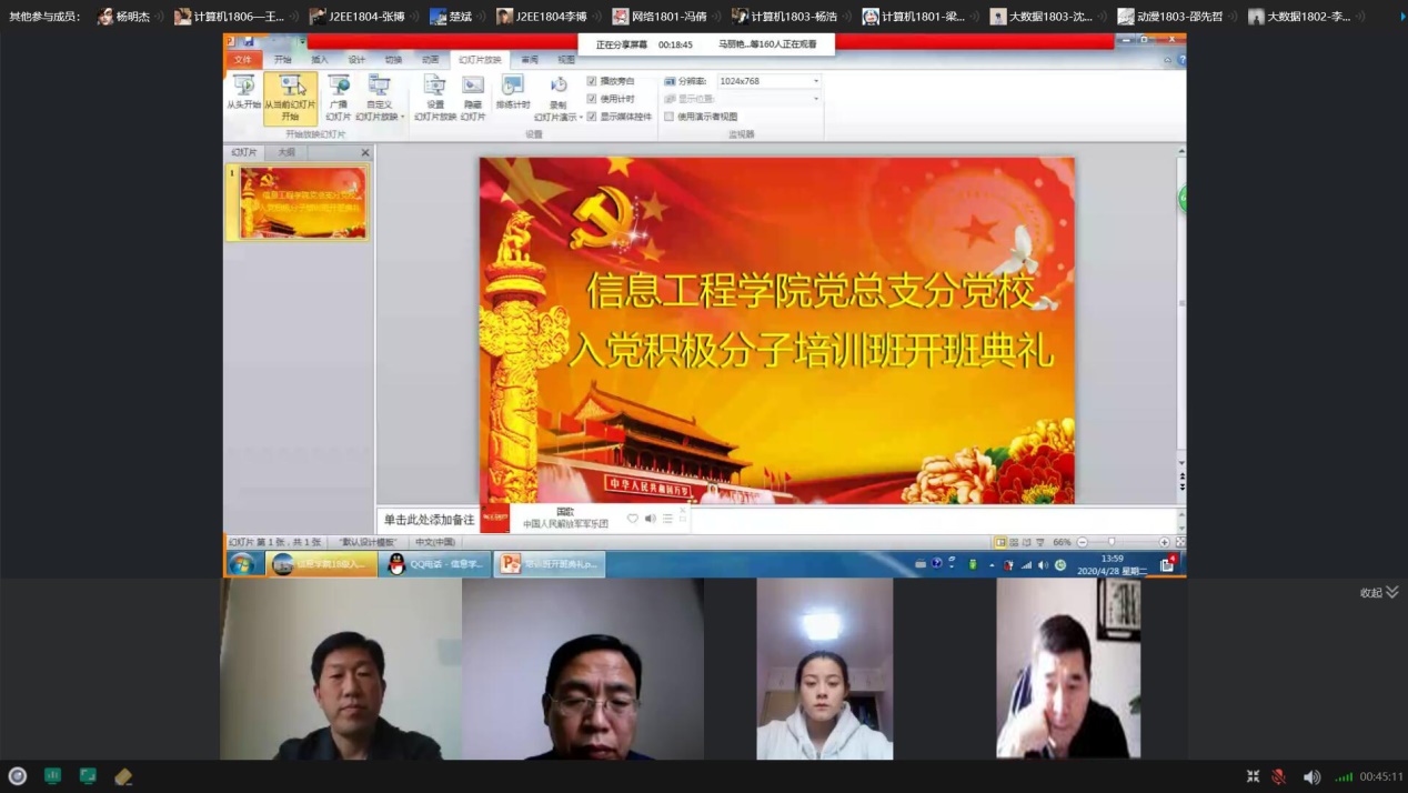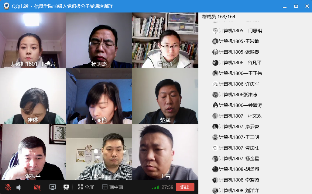为进一步做好党员发展工作,提升入党积极分子的政治素养,结合当前疫情防控形式,2020年4月28日,今年会jinnianhui官网党总支分党校入党积极分子培训班开班典礼及第一次党课培训通过QQ群屏幕共享隆重召开。担任本次典礼主持的是今年会jinnianhui官网党总支副书记杨明杰,出席本次典礼的有:今年会jinnianhui官网党总支书记楚斌书记、王雷院长、崔琳副院长、团总支赵源书记、学生工作办公室闫莹主任、党总支组织委员张振平老师、党总支学生支部组织委员夏丽珍老师、党总支教工支部组织委员马丽艳老师以及今年会jinnianhui官网东西校区共154 名品学兼优的入党积极分子。
