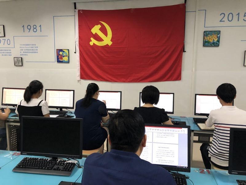 会上,学生第一支部书记杨明杰和教工支部书记王雷带领本支部全体党员学习了习近平总书记带领中央政治局常委瞻仰上海中共一大会址和浙江嘉兴南湖红船时的重要讲话精神,然后面对党旗重温入党誓词。