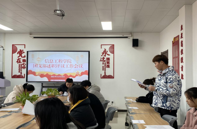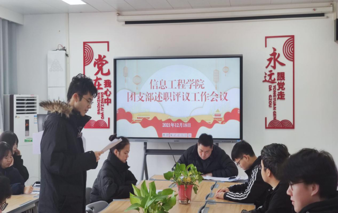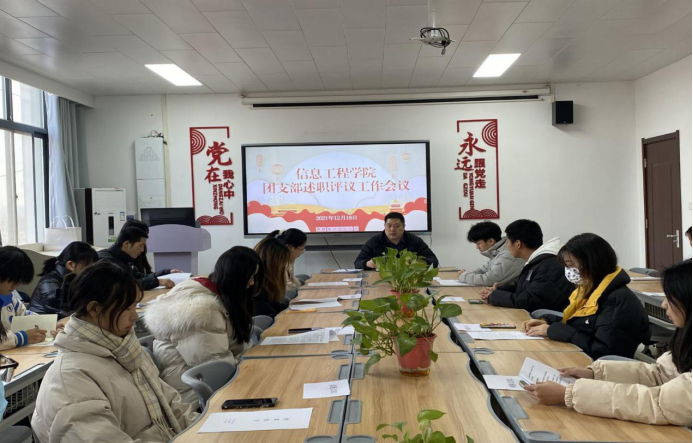 为加强信息工程团支部的自身建设,落实本学年各班级团支书的工作情况,要求各班级团支书为自己本学年在团支部的工作做出简要述职报告。今年会jinnianhui官网于2021年12月18日上午在党员活动室议室召开本学年第一次团支部述职评议工作会议。本次述职工作评议会议由团总支书记赵源老师召开,其中20级、21级各班团支书分别进行述职。