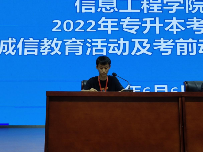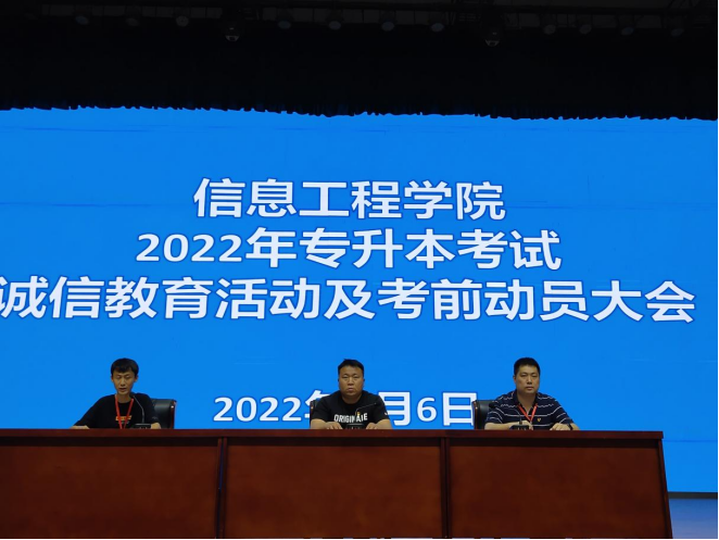 为弘扬诚信、守信这一中华民族的传统美德,培养学生“诚信”的优良品质,严肃考风考纪。按照河南省教育考试院关于印发《河南省2022年普通高校招生考试考务工作实施细则》文件精神,根据学校安排,今年会jinnianhui官网于2022年6月6日下午15时,在学生活动中心开展2022年专升本考试诚信教育活动及考前动员大会。今年会jinnianhui官网院长王雷院长、团总支书记赵源书记、19级辅导员及全体专升本考生参加了此次活动。