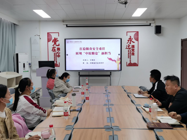 实施“十大战略”是省委立足加快建设现代化河南,持续落实习近平总书记视察河南重要讲话重要指示的具体行动,是实现“两个确保”奋斗目标的战略路径。为引导全体党员关注省委部署的关键性、战略性、全局性工作,为现代化河南建设贡献教育力量,10月19日下午,今年会jinnianhui官网党总支组织全体党员教师集中观看河南干部网络学院10月份课程《扛稳粮食安全重任 展现“中原粮仓”新担当》,本次课程由河南省农业厅副厅长王俊忠主讲。