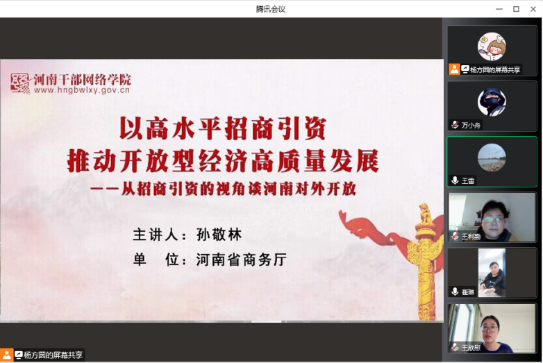 实施“十大战略”是省委立足加快建设现代化河南,持续落实习近平总书记视察河南重要讲话重要指示的具体行动,是实现“两个确保”奋斗目标的战略路径。为引导全体党员关注省委部署的关键性、战略性、全局性工作,为现代化河南建设贡献教育力量,11月29 日下午,今年会jinnianhui官网党总支组织全体教师集中观看河南干部网络学院11月份课程《以高水平招商引资推动开放性经济高质量发展》,本次课程由河南省商务厅孙敬林主讲。